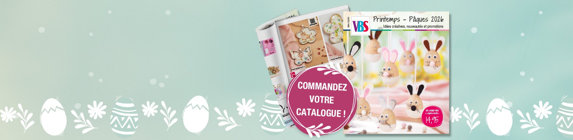 Depuis plus de 50 ans, VBS vous offre un choix immense d'articles et de fournitures pour les loisirs créatifs et les activités manuelles. Vous trouverez tout ce dont vous avez besoin pour votre porchaine création. Parmi une gamme d'environ 16 000 articles, nous vous proposons les fournitures nécessaires : parcourez les différentes catégories comme les objets bruts à décorer, la papeterie créative, les tissus et la couture, ou encore la création de bijoux, les activités enfants, etc. Trouvez l'inspiration et laissez-vous guider pour la réalisation par nos nombreuses fiches créatives gratuites. Une fois votre choix effectué, vous n'avez plus qu'à passer commande directement en ligne sur notre boutique en ligne. C'est très simple. Pour toute question ou commentaire, notre service client est toujours à votre disposition pour vous aider.