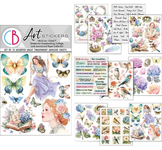 Découvrez les Art Stickers « Daydreams » . Ces feuilles de stickers sont imprimées avec des motifs printaniers tels que des papillons, des plumes et des fleurs. Avec 10 feuilles de motifs inspirants, elles vous offrent d'innombrables possibilités pour embellir vos compositions de scrapbooking, vos junk journals ou vos cartes faites à la main.