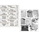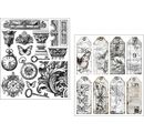 Vous recevrez 10 feuilles de 12 cm remplies de motifs inspirants tels que des tags, des appareils photo, des horloges, des colonnes et bien d'autres éléments décoratifs, parfaits pour le scrapbooking, le journaling ou comme décorations pour des cadeaux.