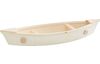 La barque déco VBS « Brumes côtières » en bois brut mesure env. 36 cm de long, env. 4,3 cm de haut et env. 10 cm de profondeur.