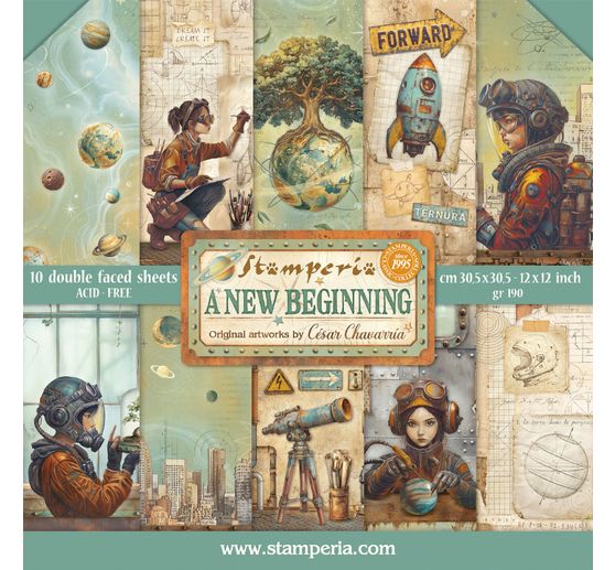 Faites un voyage créatif dans les étoiles avec le Bloc de papier scrapbooking « A New Beginning » ! Créez des projets uniques inspirés d'astronautes, de robots, de fusées, de lettrages, de silhouettes de gratte-ciel, d'un arbre sur un globe terrestre et bien plus encore.