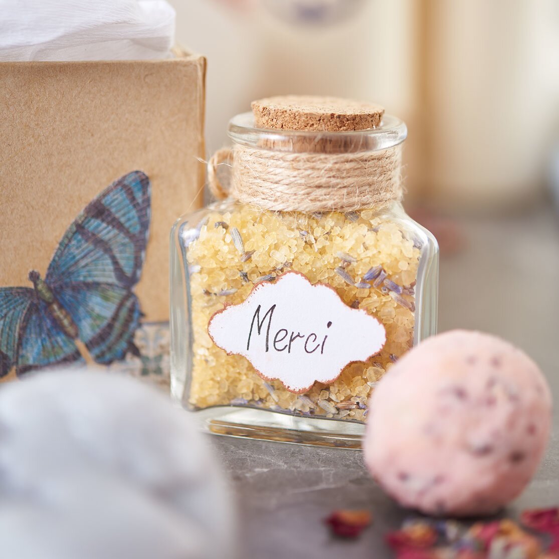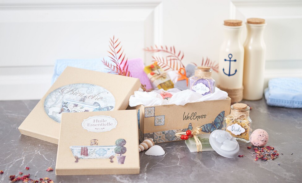 Vous recherchez une idée cadeau originale ? Créez vous-même une box wellness à remplir de savons et sels de bain faits maison.
