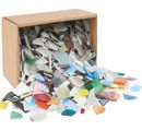 Assortiment d'Env. 2 kg de bris de tesselles mosaïque en verre aux bords arrondis de différentes formes, couleurs et tailles.