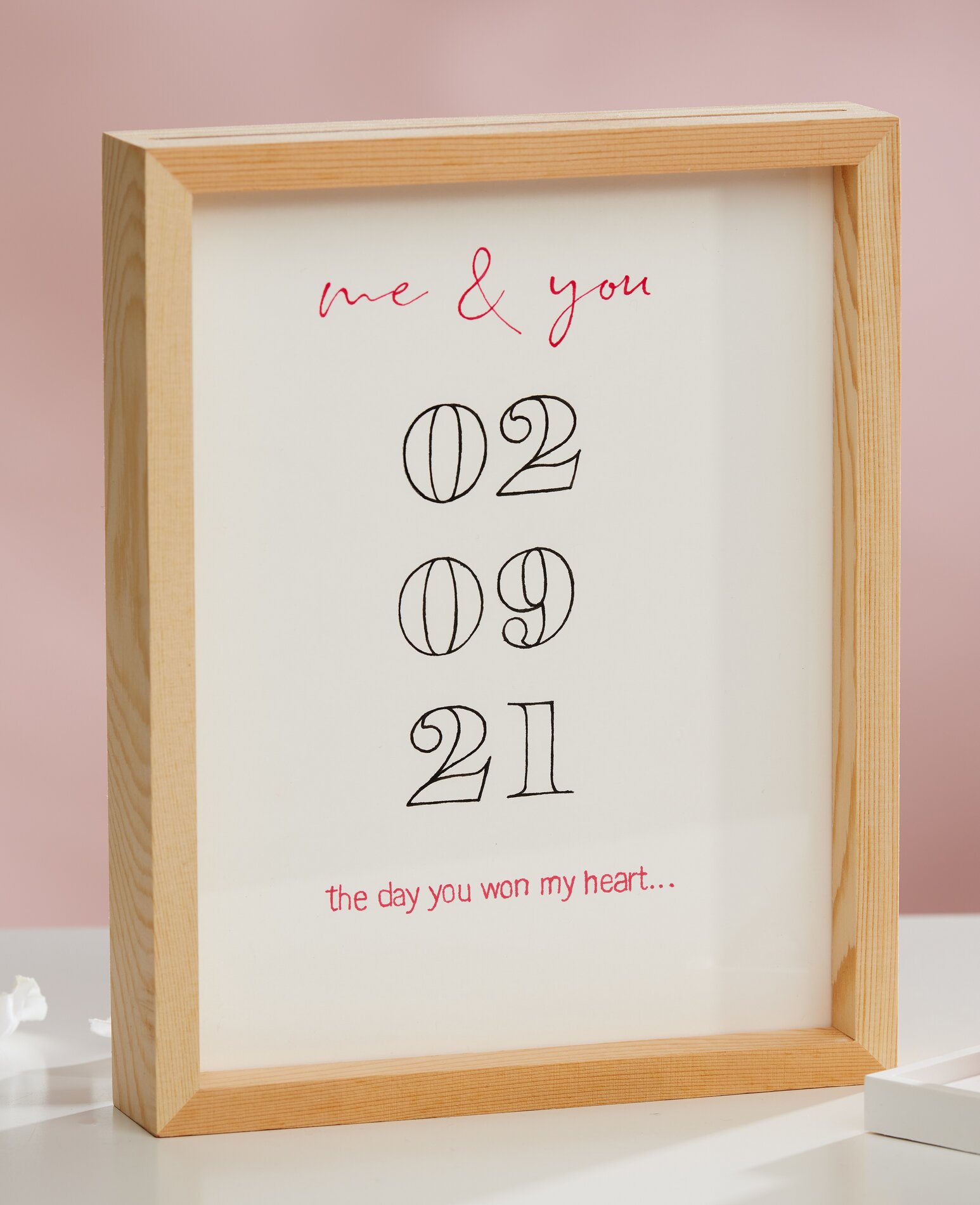 Découpez une feuille de papier à croquis A4 aux dimensions exactes de la vitre en acrylique du cadre. Téléchargez le modèle puis sur une autre feuille de papier, réalisez avec lui votre propre modèle comportant votre date anniversaire et votre message. Placez votre propre modèle sous la feuille de papier à croquis et reportez-le entièrement à l’aide des fineliners. Laissez l’encre sécher quelques instants et placez la feuille de papier dans le cadre.