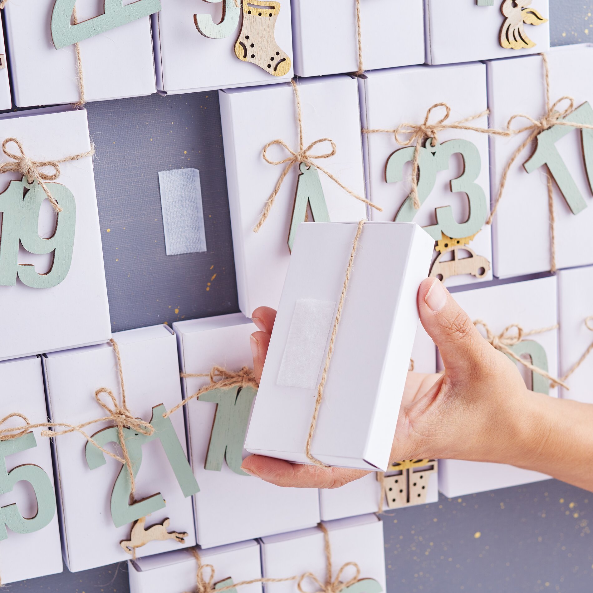 Peins les Chiffres de l'Avent et Pièces à disperser dans tes couleurs préférées. Ces petits détails rendent ton calendrier de l'Avent encore plus festif et individuel.