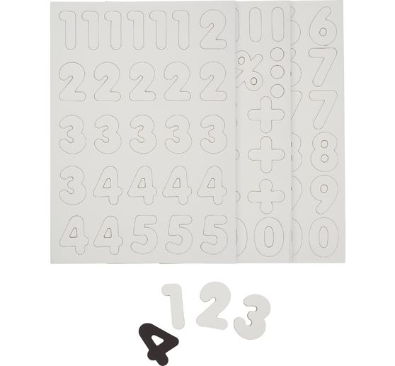 Rendez l’apprentissage des chiffres et du calcul amusant et attrayant pour vos enfants avec ces chiffres aimantés vierges !Livrés en planches, ces 90 chiffres arabes et autres symboles mathématiques élémentaires (+, : , -, /, %) d’env. 1,5 à 4,3 cm en carton blanc de qualité sont prédécoupés et se détachent facilement afin d’être personnalisés… avec des crayons de couleur, des feutres, de la peinture, des papiers, des stickers, des paillettes et tellement d’autres choses.Une fois décorés, ces chiffres pourront être placés et agencés sur le frigo, sur un tableau blanc aimanté pour s’adonner à des premiers calculs.