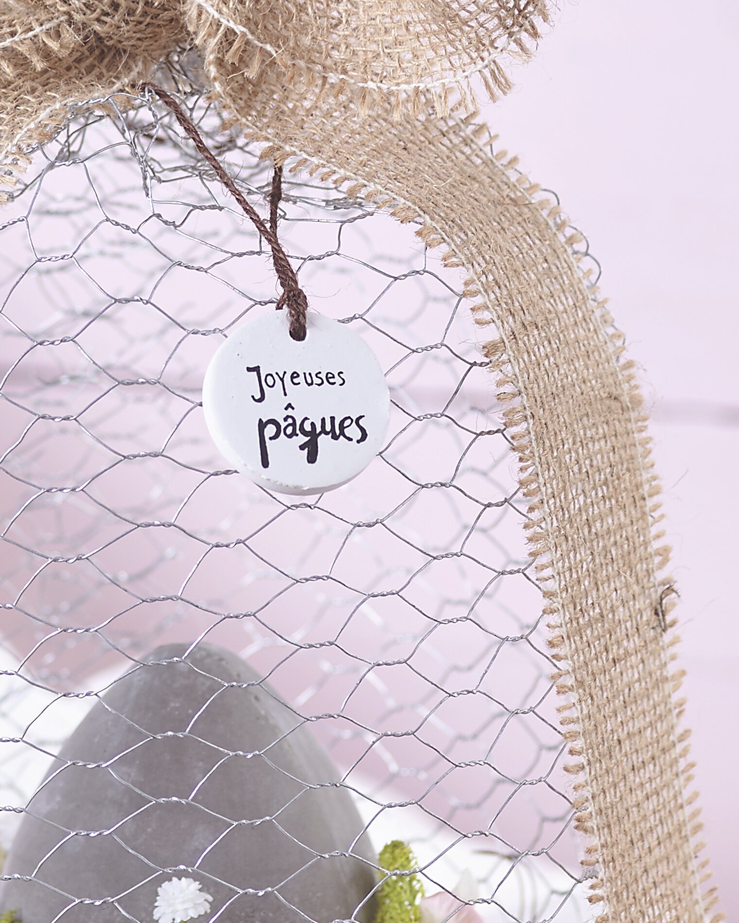 Nouez le ruban de jute beige aussitôt, il finira de maintenir le tout.