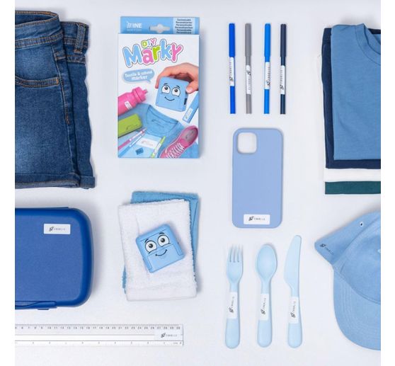 Découvrez la liberté créative avec le set créatif Marky de Colop! Ce set polyvalent est votre compagnon idéal pour marquer individuellement des vêtements et des objets . L'encre noire spéciale n 'est pas seulement résistante au lavage et au lave-vaisselle, elle est également testée dermatologiquement.