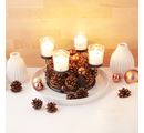 Vous allez adorer la combinaison harmonieuse de métal, de bois et de verre transparent qui donne à votre pièce une atmosphère chaleureuse et accueillante. La couronne mesure 17 cm de diamètre et 9,5 cm de haut, parfaite pour resplendir sur votre table ou votre étagère. Les quatre verres sont parfaits pour des bougies chauffe-plat et créent un jeu de lumière d'ambiance avec une hauteur de 6 cm et un diamètre de 4,8 cm.
