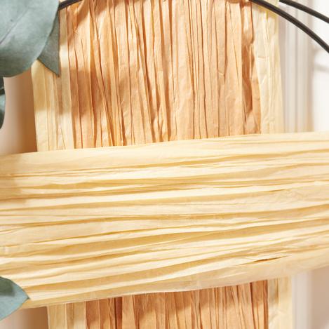 Prends VBS papier Du raphia et enroule-le autour des anneaux métalliques. Fixe le fil de départ et le fil d'arrivée avec colle de bricolage, pour que tout ce qui est enroulé tienne bien. Le raphia donne aux anneaux un aspect naturel.