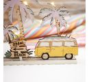 Cette décoration se compose de 3 pièces en bois à assembler, dont un socle rainuré et deux silhouettes décorées sur une face : un van et des panneaux de signalisation et un groupe de palmiers. La décoration montée, elle mesure env. L 26 x l 3,5 x H 18 cm. Pour donner à votre paysage de vacances au camping l’allure que vous souhaitez, vous pouvez utiliser de la peinture acrylique classique ou à effet chalky, des marqueurs acryliques ou des accessoires miniatures. Pour une meilleure tenue des pièces à emboîter, fixez-les en plus avec un peu de colle de bricolage (non fournie).