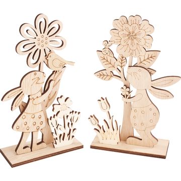 Avec 12 pièces, dont des rails d'emboîtement en bois MDF et des motifs joliment conçus en contreplaqué plaqué, vous pouvez assembler une adorable petite maison en un clin d'œil. Les bras de lapin et les fleurs se fixent avec de la colle de bricolage (non fournie) et ajoutent une touche personnelle à votre projet. Le kit n'est pas peint et est décoré d'un côté, ce qui vous permet de laisser libre cours à votre imagination.
