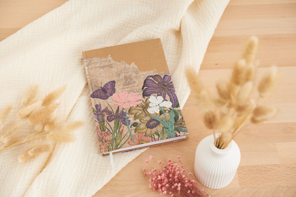 In just a few steps, you have transformed a simple notebook into a creative highlight. The possibilities are endless and leave room for many more creative ideas. Visit our online store today and discover our wide range of napkins, painting stencils and other accessories to start your next craft project! Let your creativity run wild and design something that is truly unique.