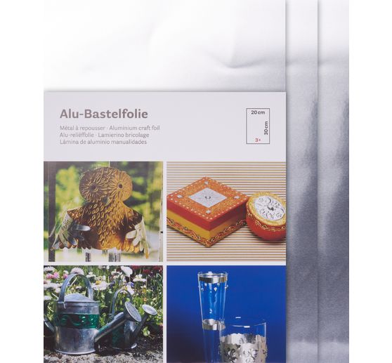 Use this aluminum craft foil to emboss a variety of items or create a creative metal look. Included are 3 foils with a size of 20 x 30 cm and a thickness of approx. 0.15 mm. The aluminum foil is dimensionally stable and strong and therefore ideally suited for crafting figures, decorations or wrapping gifts.