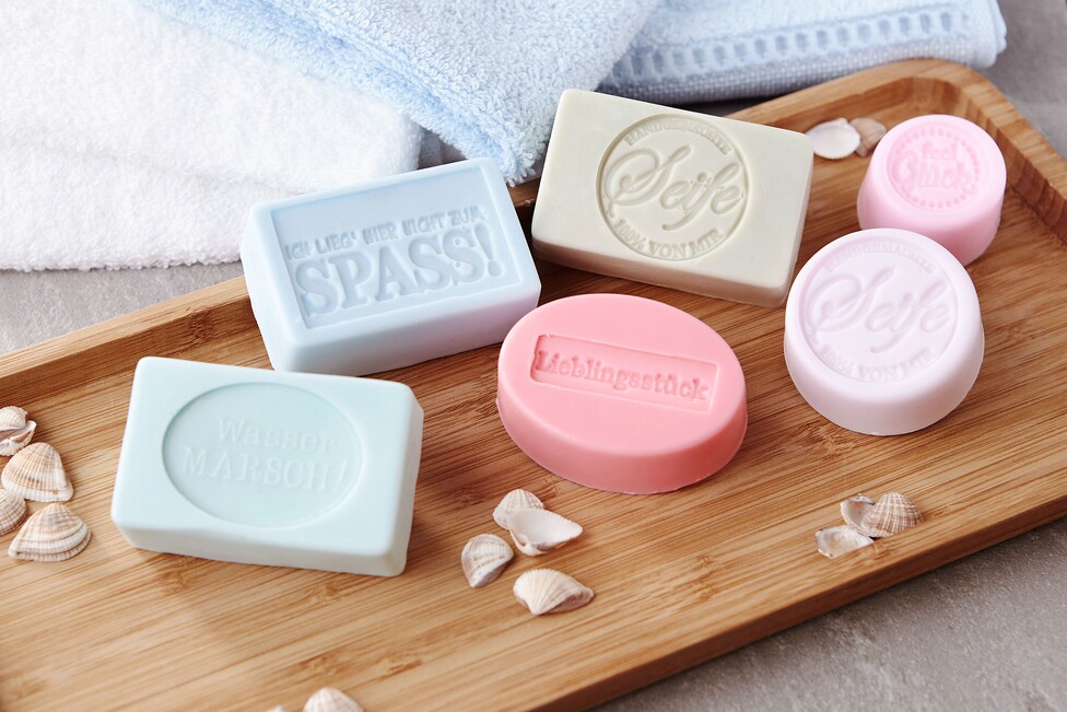 Car, en effet, de nombreuses possibilités s’offrent à vous comme utiliser des moules de toutes formes (carrés, rectangulaires, ronds, en forme de cœur ou de fleur), des moules structurés ou lisses, des plaques décoratives ou des tampons spécialement prévus pour la fabrication de savon.