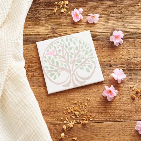 Carefully remove the stencil while the paint is still wet and clean it directly with clear water. Leave the tile to dry for 4 hours.