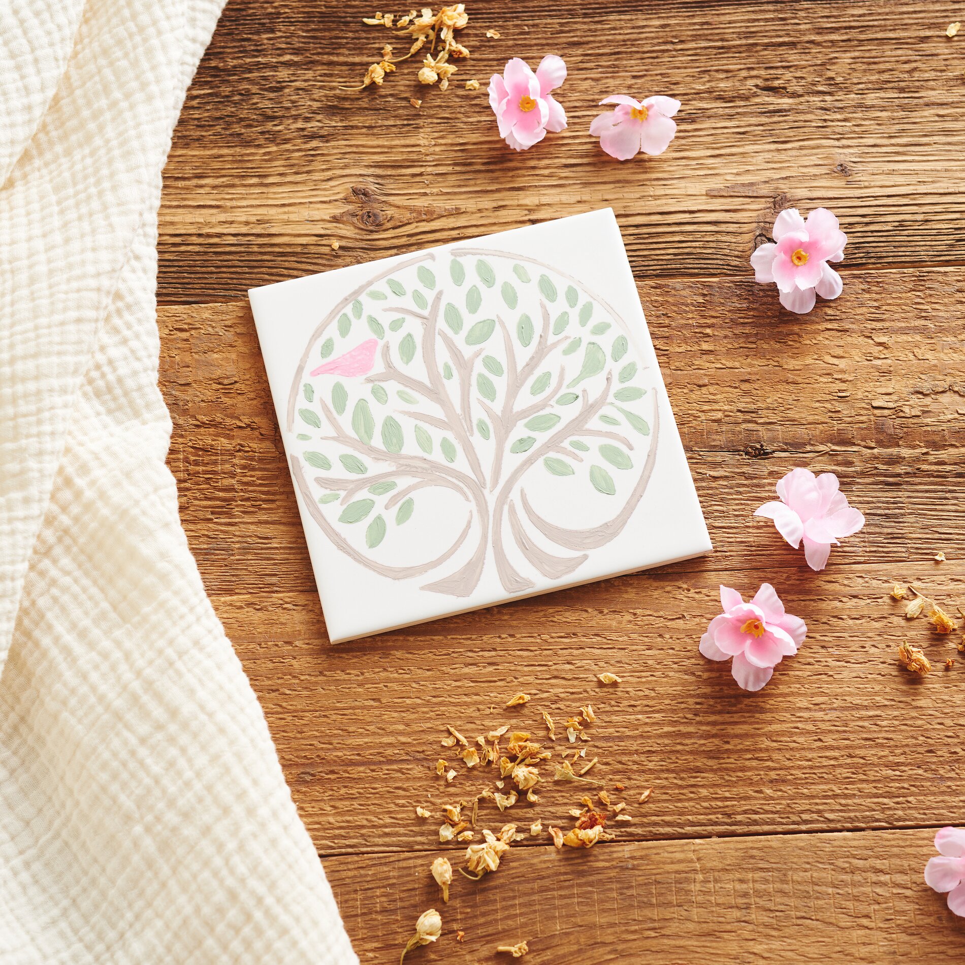 Paint the motif, for example a tree, with the KREUL Glass & Porcelain Chalky-Set. These paints are specially developed for smooth surfaces such as glass or ceramic.