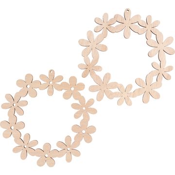 Wooden decoration pendant "Round" with ribbon, set of 4