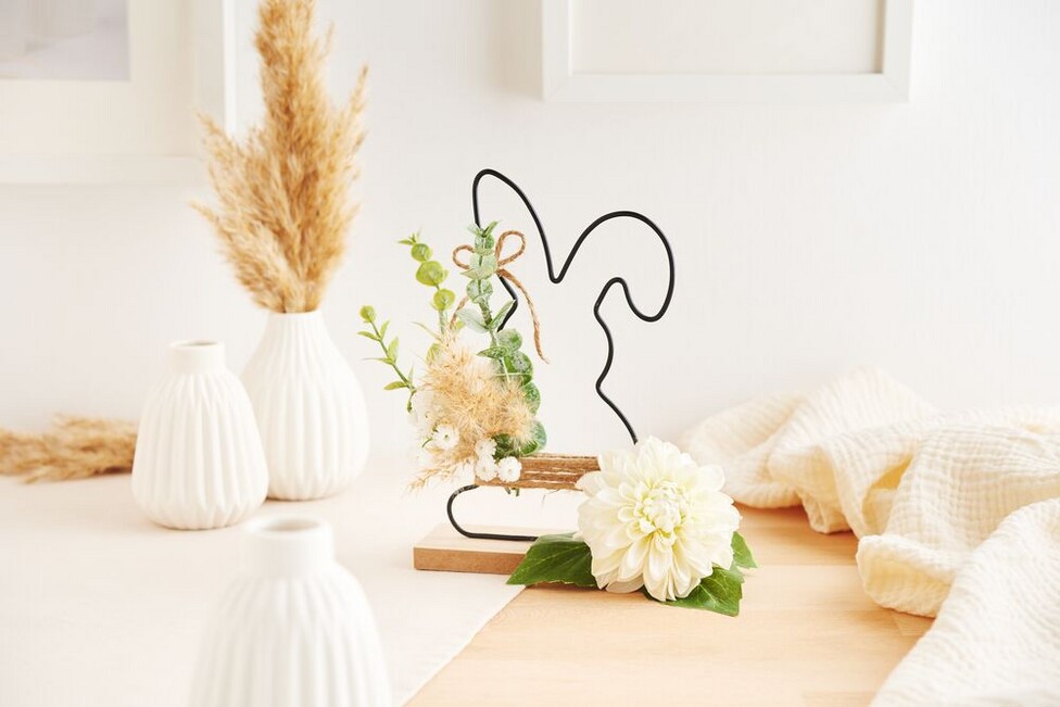 Create an enchanting bunny decoration in just a few steps that will bring rustic charm and freshness to your home with jute ribbon and plants. Perfect as an eye-catcher or personal gift!