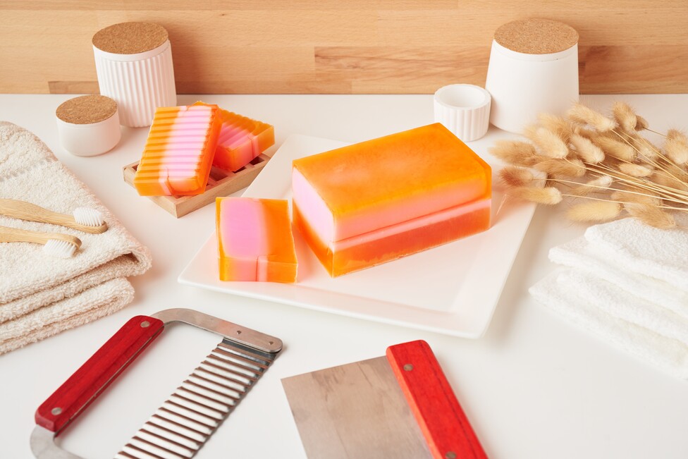 Once the soap has completely hardened, you can remove it from the mould. Use a soap cutter or a sharp knife to cut the soap to the desired thickness. Be careful and work precisely to achieve beautiful soap bars!