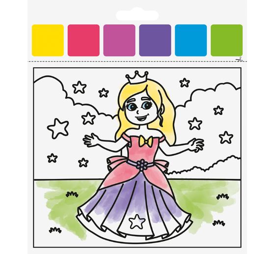 This versatile colouring pad including watercolours features an integrated water brush that makes painting on the go easier than ever before. The water can be conveniently transported in the brush so that each of the ten imaginative motifs on the 15 x 13 cm colouring pad can be brought to life wherever you are. Thanks to the clever design, cleaning the brush is child's play: simply wipe the water from the shaft onto a blank surface - clean and effortless!