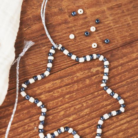 Now comes the creative part: thread beads onto the wire to your heart's content. Choose the colors and sizes you like and play with different patterns to give your star an individual look. Be careful not to thread too tightly so that the wire remains flexible.