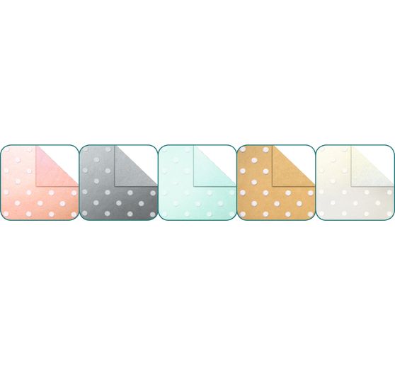 This creative paper "Velour dots" has a content of 10 sheets. The grammage is approx. 80 g/sqm and 250 g/sqm with 5 sheets each in a colourful assortment with harmonious Pastel-colours. In addition, this paper is refined Paper with shimmering velour dots.