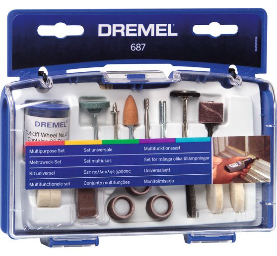 A comprehensive DREMEL 687 starter set with the most popular accessories for the Multifunctional tool. The 52 attachments are perfectly suited for a wide range of small craftsman's work such as milling, grinding, polishing, cutting and drilling.