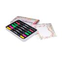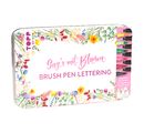 This high-quality metal tin contains 6 brush pens in fresh flower colors, 5 beautiful design paper cards to start lettering and 2 sheets of transfer stickers. The brush pen laces are soft and guarantee success. With the fineliners you can conjure up fabulous details and with the transfer stickers you can add the finishing touches to your card.