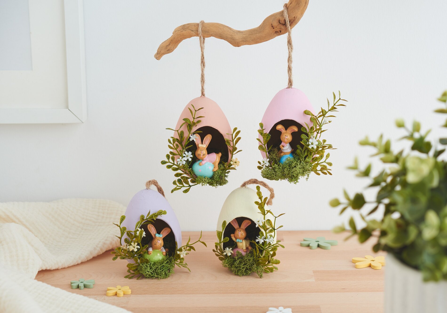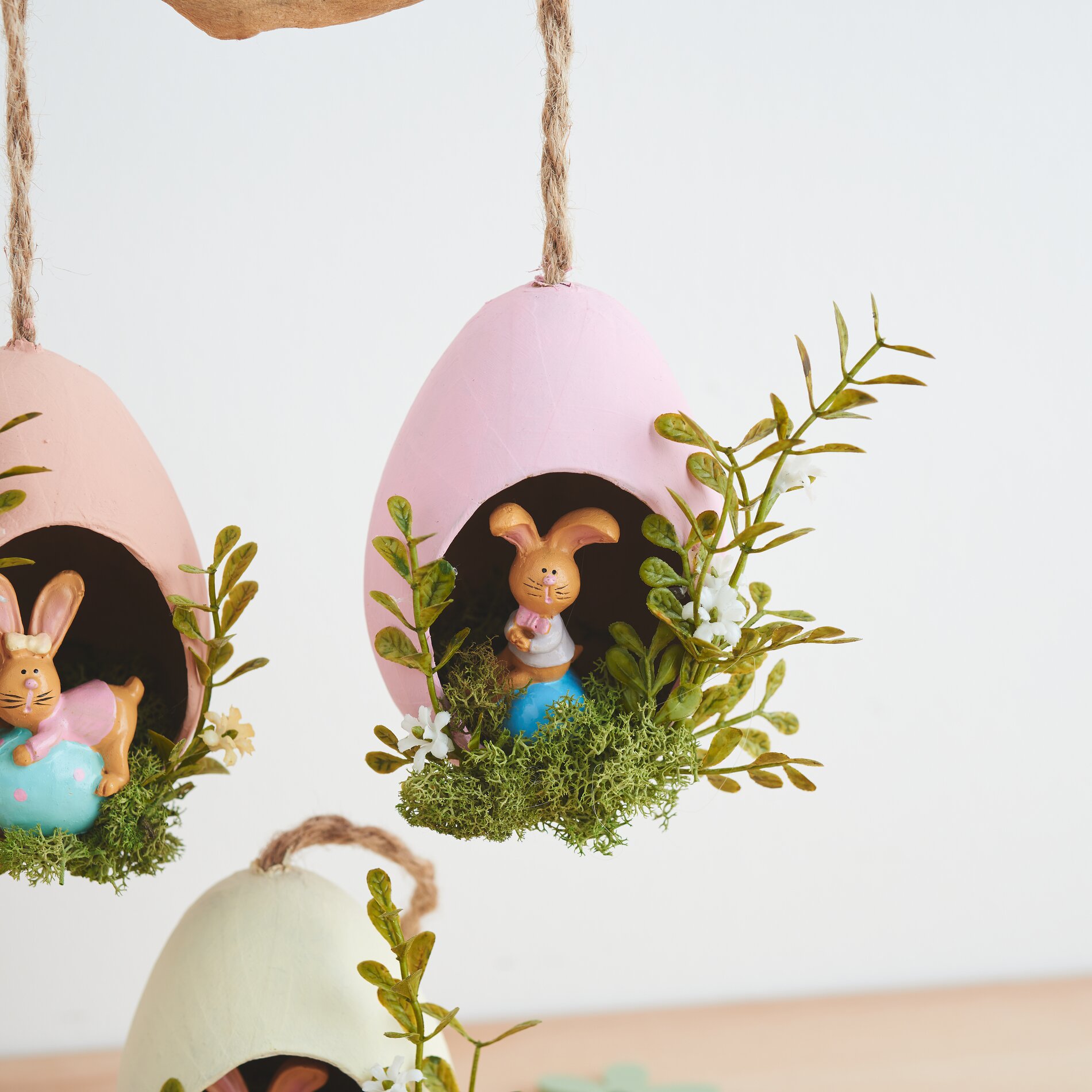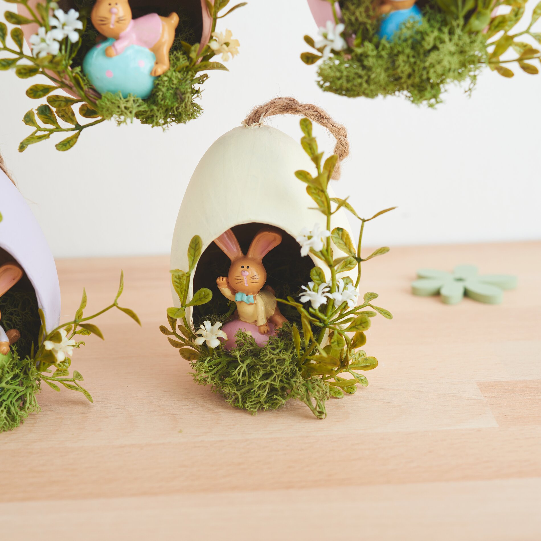 Are you looking for a creative Easter decoration to hang up? Then these little "bunny nests" are ideal for you. Even inexperienced people can make them and the cute creations are an eye-catcher for everyone