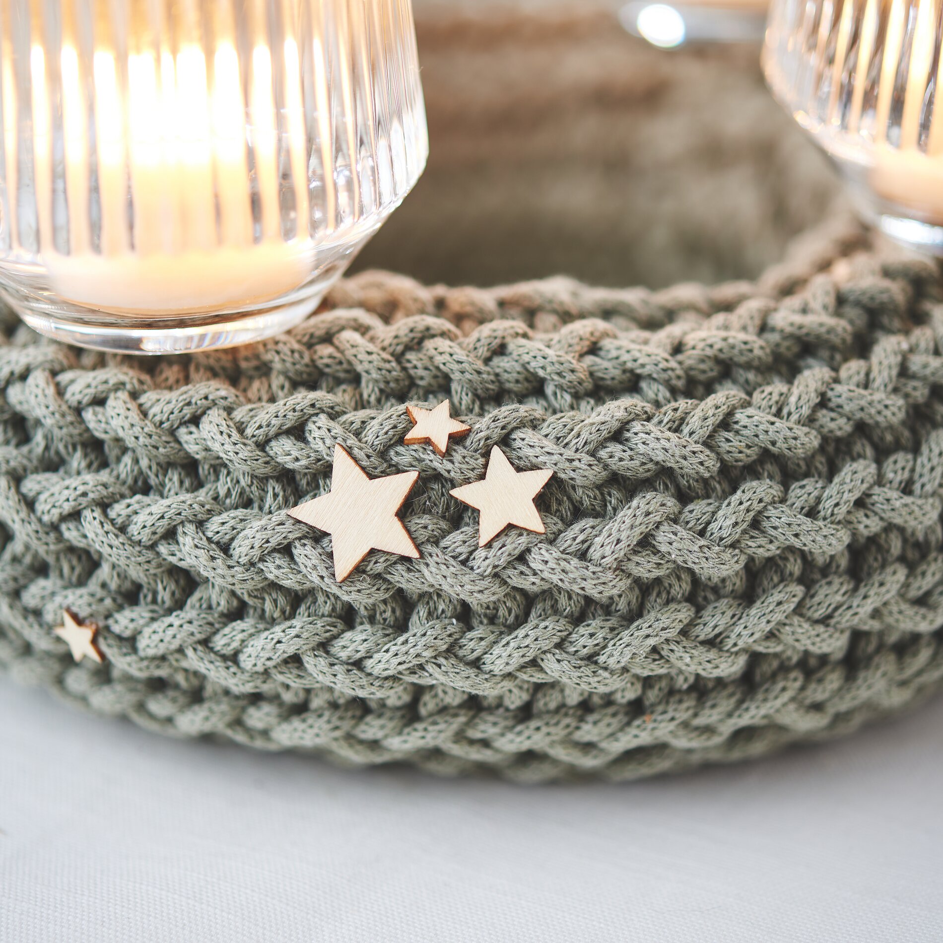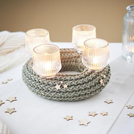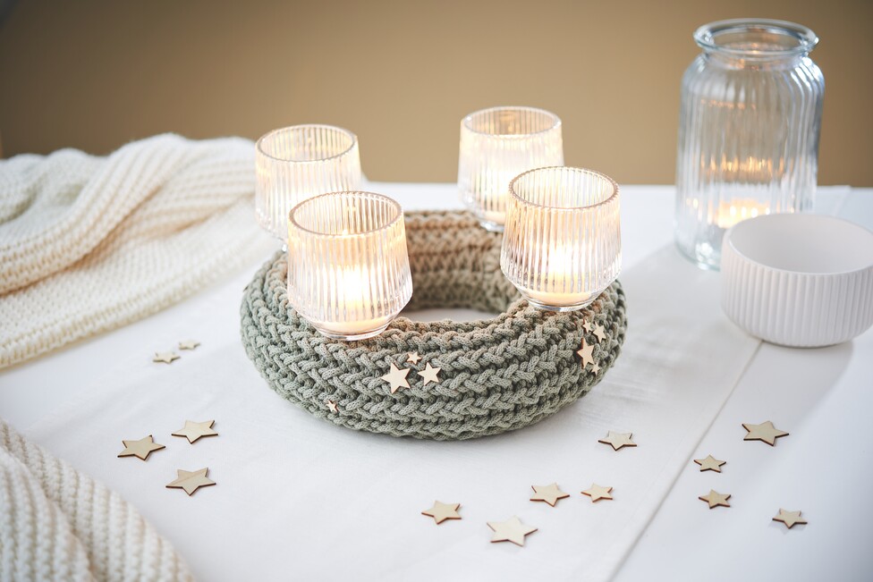 Continue knitting Wrap the next row as before, always in the "figure 8" pattern, and knit the stitches off. Continue this process until you have reached the desired length (we recommend approx. 74 cm for the cover of a 25 cm polystyrene ring).