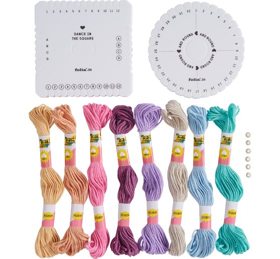 Great Kumihimo handicraft set "Bracelets" for making flat and round Kumihimo bracelets. The set included everything you need to weave these bracelets.