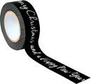 Beautiful, self-adhesive masking tape "Merry Christmas & Happy New Year" with a length of approx. 10 m and a width of approx. 15 mm. On the black-ground adhesive tape the writing "We wish you a Merry Christmas and a Happy New Year!" is printed in white.