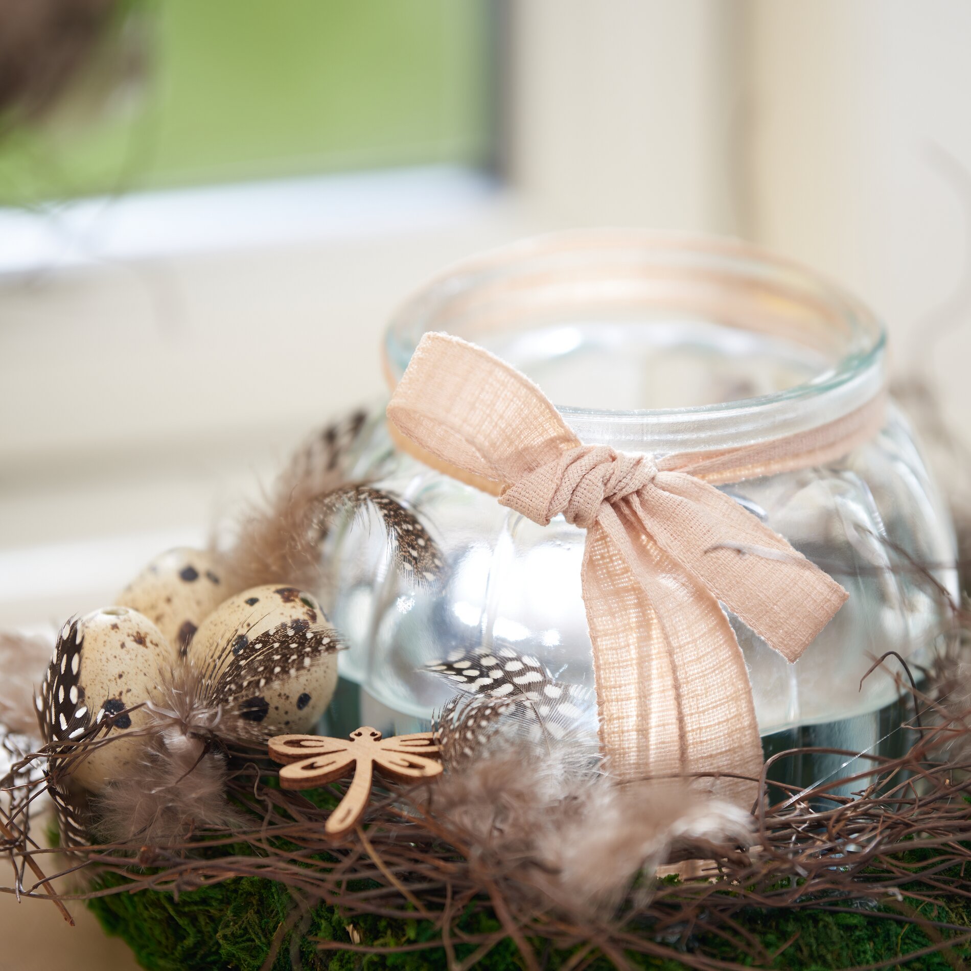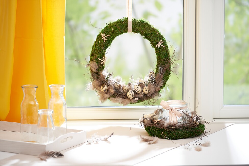 This idea is a good example of decorative handicrafts with natural materials for the Easter season. Moss wreaths, decorations-willow and more bring the magic of nature directly into your home. Get inspired and create your own natural Easter decorations with our materials!
