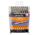 The 9-piece set Pigma brush Brush pens consists of the colours Black, Green, Purple, Blue, Rose, Dark Sepia, Red, Orange and Brown.