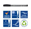The high-quality felt-tip pens are not only suitable for paper, but also for many other surfaces such as metal, glass, ceramics, cardboard, wood and more. The ink is waterproof and low-odour, so you can work with it without hesitation. Thanks to their quick-drying properties and resistance to erasing on most surfaces, the felt-tip pens are also ideal for mixed media techniques.