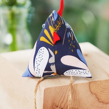 Téléchargez et imprimez les modèles (pour le corps, les pattes, le bec et la crête) et découpez-les. Placez le modèle pour le corps sur le tissu et les modèles pour les pattes, la crête et le bec sur la plaque de feutrine et reportez-les au feutre magique. Découpez le tissu et la feutrine avec des ciseaux bien aiguisés. Pour les coupons de tissu carrés et la crête, ajoutez une marge de couture d'env. 1 cm. Veillez à ce que de petits repères pour les ouvertures – notamment pour la crête, le bec et les pattes – figurent sur les coupons de tissu.