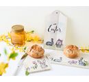 The little boards can be designed great. The wood can be painted or glued. There is also a popular way to do handicrafts with children: burn names or sentences into the breakfast boards with a branding pen.
