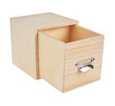A versatile VBS drawer box "Cube" with a size of approx. 12 x 12 x 12 cm. The drawer has a handle, with an insert for the inscription, made of silver-coloured metal and measures approx. 10.5 x 11 x 10.5 cm. The internal dimensions are approx. 9.3 x 9.9 x 9 cm. The material of the box is plywood. One side of the drawer is made of balsa wood.