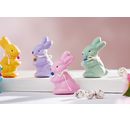 The cute bunnies can be painted very well with Acrylic-colors or Décopatch paper stick on. So every rabbit gets its individual outfit.