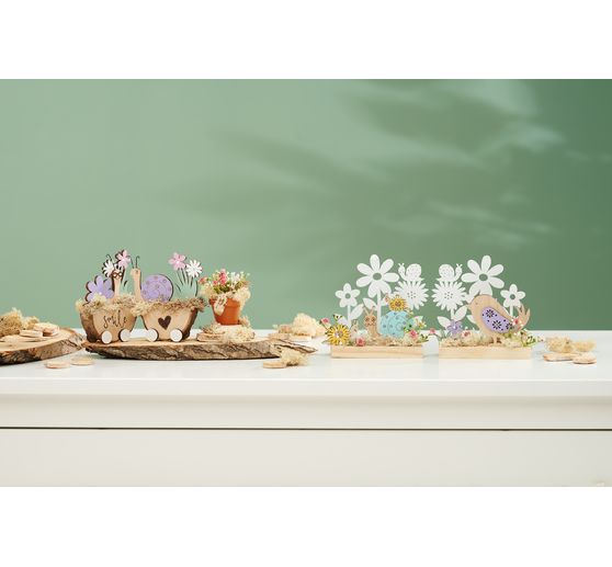 Spring can come! A beautiful decoration in natural wood look or individually designed by painting with acrylic markers, Chalky Color or craft paint. There are no limits to your creativity here. The finished motif is a great eye-catcher in a wreath, on the decorative plate or on the windowsill.