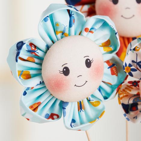 Ces petites fleurs en tissu personnalisés par des visages au large sourire sont faciles et rapides à confectionner. Le tissu tricot servant à créer leur visage est déjà imprimé et coudre les pétales en tissu ne vous posera aucun problème. Amusez-vous bien à les réaliser !