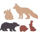 Il est composé de cinq pièces en métal indépendantes d’env. 1,9 x 2,5 cm à 7,4 x 4,5 cm d’écureuil, de hérisson, de lapin, de putois et de renard, compatibles avec toutes les machines de découpe actuelles.