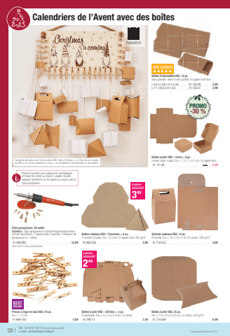 Exemple de d%u00e9coration avec Set de pochoirs VBS %u00ab Merry Christmas %u00bb p. 4, Planches de contreplaqu%u00e9 VBS p. 24, Set de cordelettes en coton p. 13 et Cordelette en jute disponible sur vbs-hobby.fr.-30 %Stylo pyrograveur, 30 wattsContenu : stylo pyrograveur %u00e0 manche ergonomique recouvert de caoutchouc, 1 repose-stylo, 6 pannes, 3 tampons de pyrogravure et 1 notice.41580 05218,99dont 0,02 %u20ac d'%u00e9co-participationBESTSELLERPinces %u00e0 linge en bois VBS, 40 pc.Env. L 7,2 cm.41664 7524,89Sachets cadeaux VBS, 10 pc.%u00c0 monter. Env. L 10 x l 6 x H 16. En carton, 300 g/m%u00b2.41716 5124,99Bo%u00eetes-cadeaux VBS %u00ab Pyramide %u00bb, 6 pc.%u00c0 monter et %u00e0 plier. Env. 12,5 cm. En papier kraft, 300 g/m%u00b2.41862 2333,99Bo%u00eetes %u00e0 plier VBS %u00ab Carr%u00e9 %u00bb, 6 pc.Livr%u00e9es %u00e0 plat, %u00e0 plier. Env. L 7 x l 7 x H 3 cm. En papier brun.41121 483,292,29Bo%u00eetes %u00e0 plier VBS %u00ab Gift Box %u00bb, 4 pc.%u00c0 assembler. Env. L 5 x l 5 x H 8 cm. En carton.41240 132,49Bo%u00eetes %u00e0 plier VBS, 25 pc.Env. L 14 x l 9 x H 3,5 cm. En carton, 300 g/m%u00b2.41716 5296,99AVIS%u00a0CLIENTSxxxxxBo%u00eetes d%u2019allumettes VBS, 12 pc.Extra grandes, vides et sans grattoir. En papier kraft brun.L 5,5 x l 3,6 x H 1,5 cm41125 284,99L 11 x l 6,5 x H 2 cm41125 275,996 pi%u00e8cesseulement3994 pi%u00e8cesseulement249T%u00e9l : 03 69 61 69 10 (num%u00e9ro non surtax%u00e9)28 |e-mail : service@vbs-hobby.frTous les prix sont en %u20ac TTC. Calendriers de l%u2019Avent avec des bo%u00eetes Fiche3513Placez le pochoir sur la plaque de contreplaqu%u00e9 et tracez les motifs au crayon %u00e0 papier. Ensuite, repassez lentement sur les lignes au crayon avec le stylo pyrograveur.