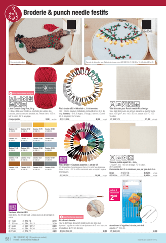 Exemple de d%u00e9corationT%u00e9l : 03 69 61 69 10 (num%u00e9ro non surtax%u00e9)58 |e-mail : service@vbs-hobby.frTous les prix sont en %u20ac TTC. Broderie & punch needle festifs yPlus de couleurs en ligneLaine Durable Cosy Fine, 50 gFil doux, id%u00e9al pour tricoter ou crocheter des vestes, des coussins, des couvertures de b%u00e9b%u00e9, etc.Pelote d'env. 105 m. 58 % coton, 42 % acrylique.chaque pelote3,591kg=71,80Couleur 310Couleur 2212Couleur 2179Couleur 218041280 0041280 3541280 1541280 16Couleur 203Couleur 317Couleur 2190Couleur 39641280 0241280 2341280 3441280 25Couleur 2142Couleur 370Couleur 2134Couleur 212441280 2841280 2941280 1141280 26Couleur 2149Couleur 2152Couleur 342Couleur 218241280 0741280 0841280 3741280 14Couleur 2239Couleur 2223Couleur 2237Couleur 223541280 3141280 3841280 1941280 21Fils %u00e0 broder VBS %u00ab M%u00e9tallis%u00e9 %u00bb, 21 %u00e9chevettesFil %u00e0 12 brins, couleurs m%u00e9tallis%u00e9es. %u00c9chevette d'env. 8 m de long. Contenu : 6 Or, 6 Argent, 3 Rouge, 3 Vert et 3 Cuivr%u00e9. 65 % polyester, 35 % lurex.41374 9968,991m=0,05BESTSELLERTambour %u00e0 broder VBSBord d'env. 10 mm de haut. En bois avec vis de serrage en m%u00e9tal.%u00d8 11 cm41116 783,19%u00d8 13,5 cm41384 131 133,39%u00d8 16 cm41384 131 173,69%u00d8 24 cm41384 131 244,19%u00d8 27 cm41116 774,69Assortiment d%u2019aiguilles %u00e0 broder, set de 6Aiguilles n%u00b0 18 %u00e0 22.41360 3402,90set de 6seulement290Toile %u00e0 broder pour Punch needle Rico DesignTissu tiss%u00e9 l%u00e2che avec une armure panama au toucher extra doux. 405 g/m%u00b2, env. 140 x 50 cm, lavable %u00e0 30 %u00b0C. 100 % coton.41384 17921,491m%u00b2=30,70ypour les laines %u00e9paissesRico Punch NeedlePour la technique de punch needle avec une laine plus %u00e9paisse. L'aiguille en m%u00e9tal d'une %u00e9paisseur de 5 mm. Manche en plastique de 19 cm de long41384 155 029,99Tissu au m%u00e8tre aspect lin %u00ab Uni %u00bb170 g/m%u00b2, env. 140 cm de large. 70 % coton,30 % polyester.Commande de 0.2 m minimum puis par pas de 0.1 m.Beige41272 768,95/m1m%u00b2=6,39Off-White41272 808,95/m1m%u00b2=6,39Exemple de d%u00e9coration avec Guirlande lumineuse micro-LED VBS R%u00e9f. 41 268 88 p. 18 et Grelots VBS p. 45.Fiche3547Fiche3545BESTSELLERFils %u00e0 broder %u00ab Couleurs assorties %u00bb, set de 4242 %u00e9chevettes d'une longueur d'env. 8 m et d'une %u00e9paisseur d'env. 1 mm. 100 % coton merceris%u00e9 avec un aspect soyeux et chatoyant.41168 1414,991m=0,04