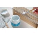 Appliquez-la en fine couche à l'aide d'un pinceau sur l'objet souhaité et déposez ensuite l’unique épaisseur imprimée de la serviette en papier par-dessus. Étalez de la colle-vernis sur le motif de serviette et le voilà parfaitement collé et protégé. Votre création est quasiment terminée et a la brillance escomptée. Après séchage complet, la colle-vernis est transparente et résiste à l'eau et aux intempéries. Votre création peut donc être exposée sans risque en intérieur comme en extérieur.