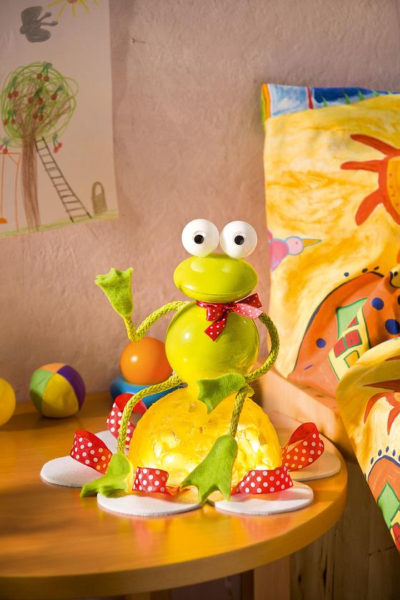 Pour finir, collez les yeux mobiles sur les boules blanches et glissez la guirlande lumineuse dans le « pistil » de la fleur.