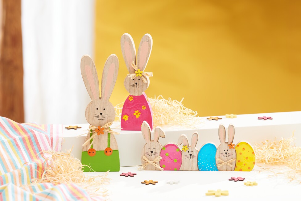 Peignez les lapins et les œufs en bois selon vos goûts personnels. Choisissez des couleurs qui complètent votre décor existant ou apportez des tons frais et printaniers à votre maison.
