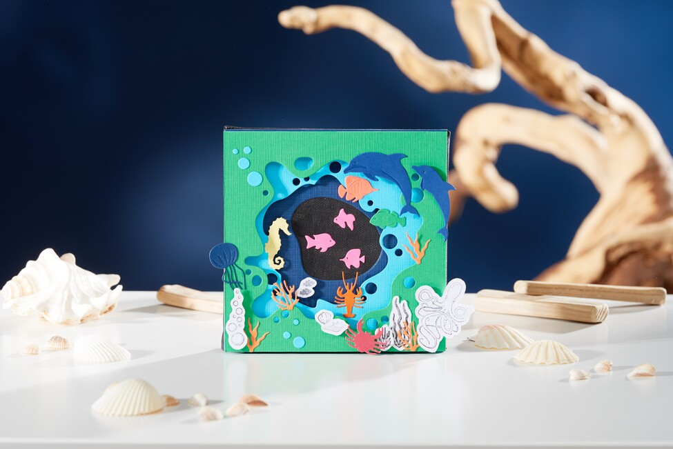 Estamper, tamponner, découper et coller – seules ces 4 étapes simples vous permettront de créer un superbe monde sous-marin en papier. Un véritable amusement pour toute la famille.