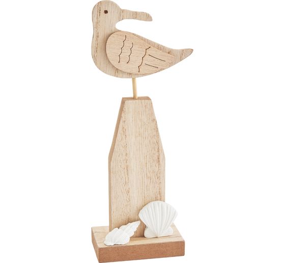 La mouette sur poteau VBS est une jolie décoration à poser constituée de 7 pièces en tout dont 5 en bois MDF plaqué bois, et contreplaqué à emboîter d'env. 1,2 cm d'épaisseur et 2 coquillages en pierre artificielle. Une fois assemblée, celle-ci mesure env. 6,5 x 3,8 x 19 cm. Les ailes de la mouette et les coquillages sont à coller avec de la colle de bricolage (non fournie).